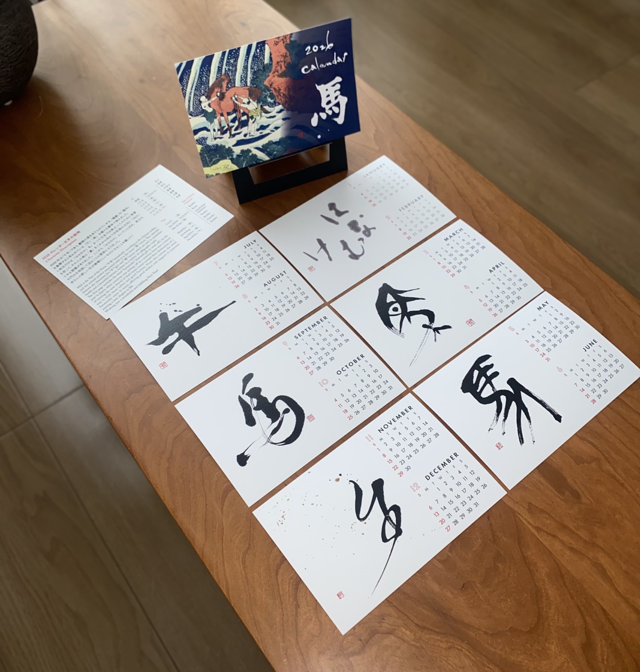 2026年の十二支である「午・馬」を、2ヶ月ごとに書体をかえて添えた卓上カレンダーを作りました。
